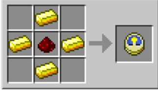 2、在工作台中,由1个红石粉和4个金锭以图中的排列来合成出一个钟