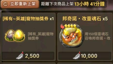 1。水改人 - 竞技场 1万 羽毛5片要150片