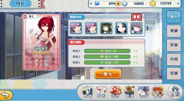 强化可以提升武姬的三围,别想太多,本萌指的是武力、智力和防御。对于本萌来说,这个简直太丧心病狂,居然需要用别的卡片当材料,给主卡强化,本萌可是立志要收集所有武姬的人啊。