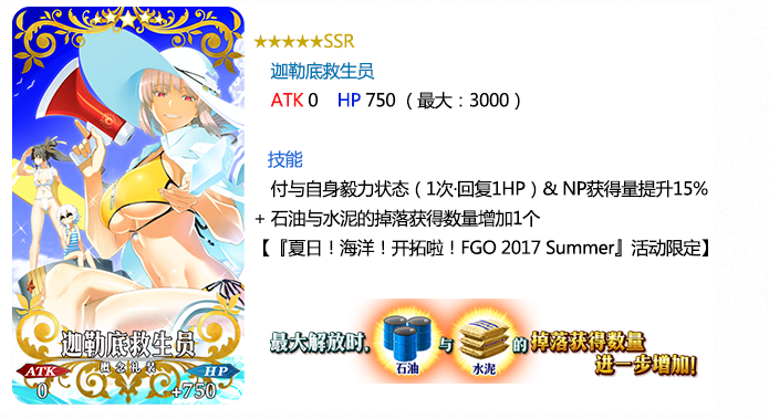 付与自身毅力状态(1次·回复1HP)& NP获得量提升15%+石油和水泥的掉落获得数量增加1个
