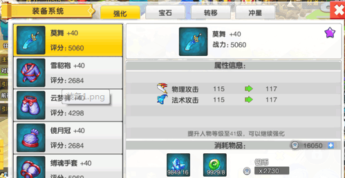 ●强化装备消耗道具炼金石、强化石以及银币,强化后提高装备的基础属性。