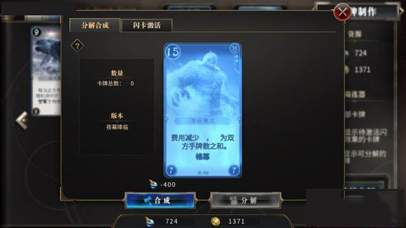 冻云寒灵15-7-7:费用减少,为双方手牌数之和,帷幕。