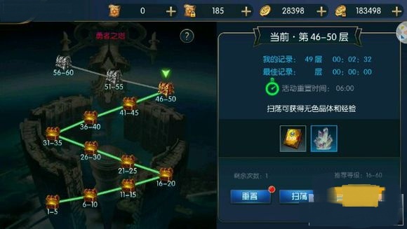 今天刷塔,一开始拿20竞技场换的武器打了四次都没过,然后去排行榜看了下,有个35召唤就一把30武器+10打过了50层。
