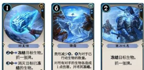 【碎星槌】、【骤霜】、【寒冰吐息】这三张卡牌配合伊莉雅非常灵活,可解场、可控场、可过牌...在残局模式寒冬凛冽中,你可以充分感受伊莉雅的强大!配合各种冰冻效果,一回合攒一套大招直接KO对手!