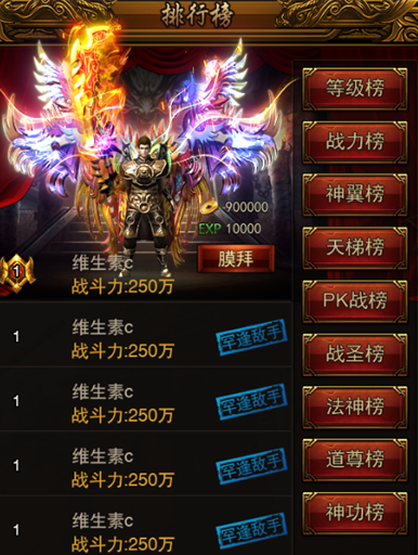 5、全服排行榜,实力巅峰比拼