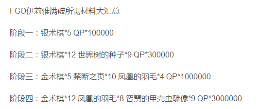 首页 → 安卓游戏资讯 → 安卓游戏攻略 → FGO伊莉雅满破需要什么材料 FGO伊莉雅满破所需材料