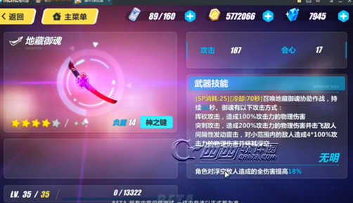 同时新增的神之键系统很有趣,可以强化所有的太刀角色,但这个技能有一个有效期,目前情况还不明朗。我们先看一下强化的属性: