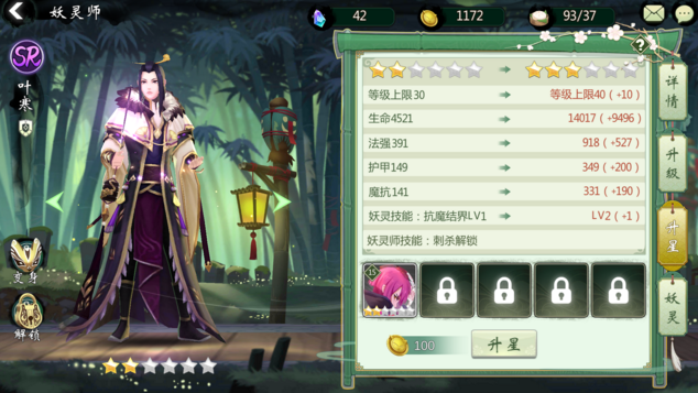 妖灵师等级达到当前星级上限时,可以对妖灵师进行升星。