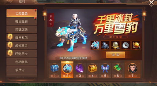 次日登录,立即领取珍贵坐骑冰封雪豹。