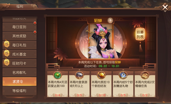 玩家在游戏中参与“求贤令”活动,完成每周指定的任务,即可免费获得强力金色和紫色武将,让您三国之旅不再寂寞!