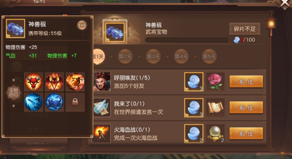 在开服测试期间,玩家每完成游戏中的一项内容,即可获得金色武将宝物碎片。集齐碎片后,即可获得金色武将宝物,为武将附加更多强力技能与属性加成,让你的武将笑傲三国战场。