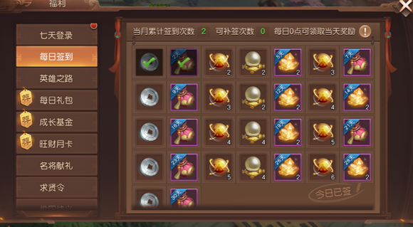 每日登陆游戏,即可领取开发组为三国玩家定制的独特“俸禄”礼包,俸禄礼包中含有海量易经丹,可帮助玩家的武将脱胎换骨,实力飞升。