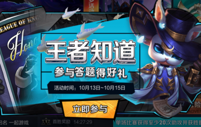 参与方式:从游戏弹窗进入或活动-限时活动-王者知道-立即参与