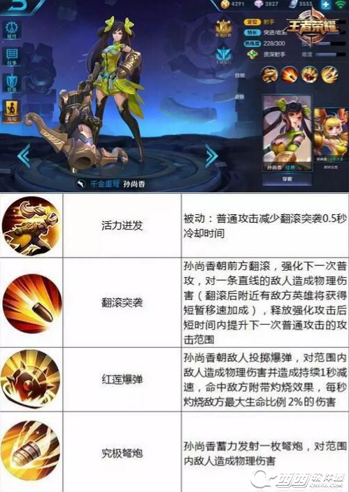 远程射手,输出能力不俗,是快速推塔流的核心射手。大小姐往往在团战中会成为集火的目标,这时候就需要靠1技能不断调整自己的走位,风筝对手。另外看到残血千万不能贪心哦,被反杀的话对我方整个团队都是巨大的损失!