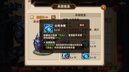 白骨身躯:骷髅战士免疫[流血],受到射手兵团的伤害降低48%。
