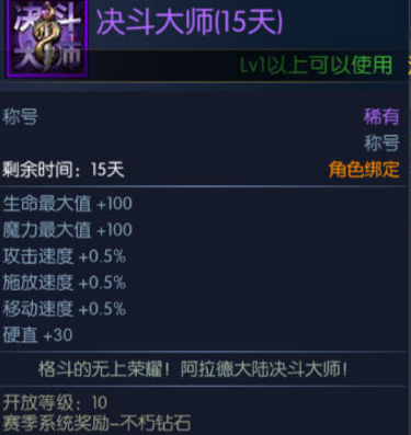 赛季结束以后,决斗等级达到钻石即可获取。所以想要这个称号的伙伴们,想着决斗pk场进发吧,记得不要选择召唤哦。