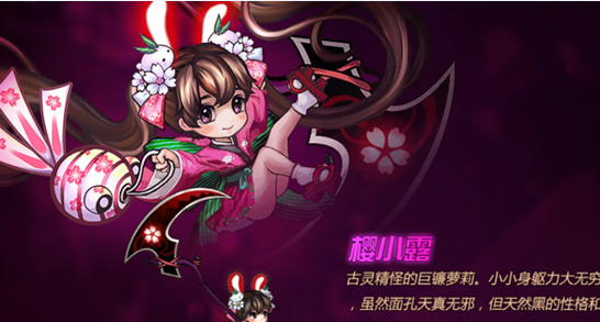 樱小露虽然攻击速度没有其他角色那么快,但是却拥有控制敌人的能力,同时攻击伤害也一点都不逊色于其他两个角色,在游戏背景中樱小露是一个古灵精怪的巨镰萝莉,小小身躯力大无穷,虽然面孔天真无邪,但天然黑的性格和以恶制恶的执念使得任何小看她的人都将会付出惨痛的代价。