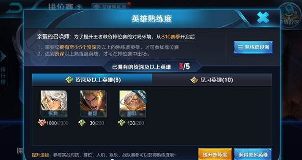 《王者荣耀》排位规则提升:要求拥有5个绿色熟练度英雄