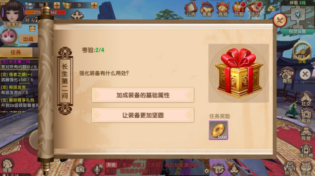 长生诀手游长生第二问答案,长生第二问答题攻略。长生诀手游玩家主线任务是前期升级的重要途径,小伙伴们达到20级时会碰到长生第二问的任务,玩家答题完成,长生诀手游长生第二问答案,西西小编为大家带来长生第二问答题攻略。