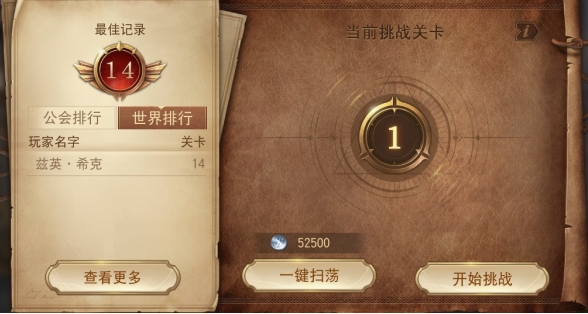 2、雪山试炼每日可以挑战一次,可以选择花费一定量的银币一键扫荡到最佳纪录,也可以选择分别挑战每关
