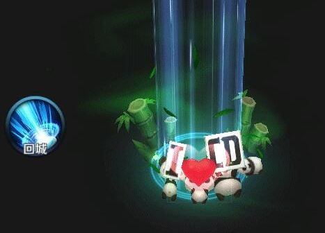 可以看到这个回城特效上有竹子、大熊猫,还有大熊猫举着几个字母!