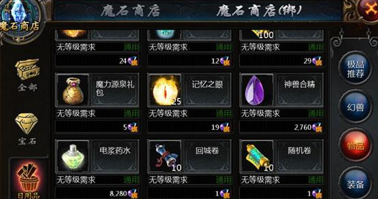 总之呢,有这么多的绑定魔石获取途径在,买一个神兽合精肯定是足够的啦。不仅如此,如果你想提高装备等级或者强化它,需要幻魔晶石和魔魂晶石,用绑定魔石也可以买哦!