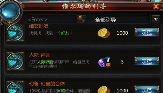 另外,一些任务也会送少量绑定魔石。比如新手的引导里就有这样的任务。