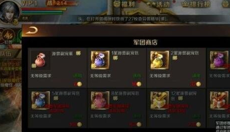 第二步:点击选择“军团服务商店”NPC,打开兑换商店,根据需求选择副宝宝。不过功勋兑换副宝宝是有条件的,具体要求如下。