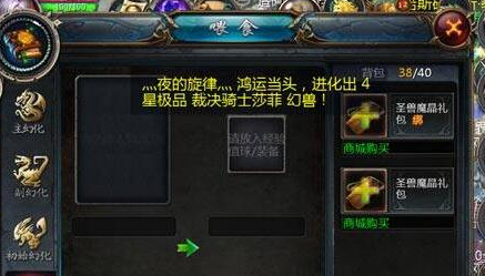 而且现在还不用换直接拿装备喂就可以了,顺便给大家说一个刷上品粮食的好去处,相信大家都有打过骑士试炼,雷霆骑士那里是会爆装备的,虽然说试炼时间是3分钟要交任务但是你可以不交,一直在里面刷,一般来说刷个几十分钟包包就满了,而且全是上品的哦。