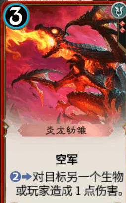 横向对比其他3费飞行生物(如白色的奈克提旅行者),强力主动技能让333标准身材的小炎龙变成攻防一体的优质生物。2费打1可以补刀/抢血,也能主动去除对方生物的屏障与帷幕效果。