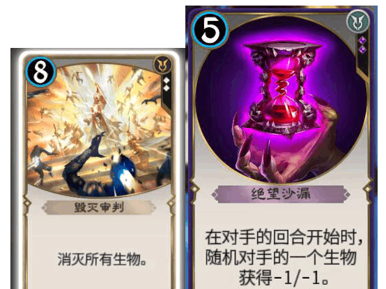 清场与持续压制对手的神器都是秘境控制套牌的标志。不多赘述,大家会在天梯上感受3沙漏压制或者8费准时aoe的绝望。