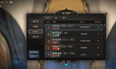 然后看到各种玩家分享的套牌。个人建议参考积分排行分类的套牌,通常是天梯玩家上分套牌,强度比较高。