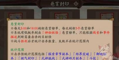 神秘妖怪:有较低概率会刷出神秘妖怪悬赏榜单,只能根据描述中的线索和事件描述判断需要击杀的目标妖怪。
