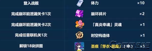 活动期间解锁率达到100%(消除18块拼图)即可获得圣痕芽衣·恶魔(中)。