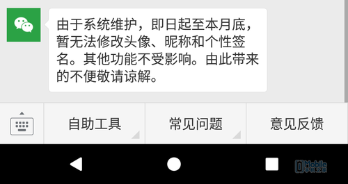 近期微信将进行系统维护,即日起至本月底,用户暂时无法修改头像、昵称和个性签名。其他功能不受影响。由此带来的不便,请广大用户谅解。