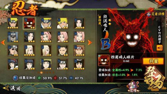 小编分析:10%的攻击力加成将使得漩涡鸣人【第四尾】的战力如虎添翼,与秘卷扦插之术配合的话,光是奥义尾兽玉就可以把对面打哭。