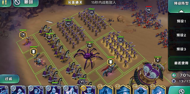 其实49关还挺好打的,如上图这样布阵,注意人族召唤技能的改变使得之前的无敌速秒变得困难,但是本关对于人族召唤技能的依赖不是很大,打的时候用两边包围中间,农村包围城市的打法,完美过关还是没问题的。