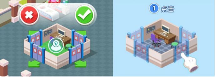 在你想让建筑摆放的位置打√,之后选门【选择门可以更好的按照自己的意思去建设更加美观的医院】,才算建造完该科室哦。