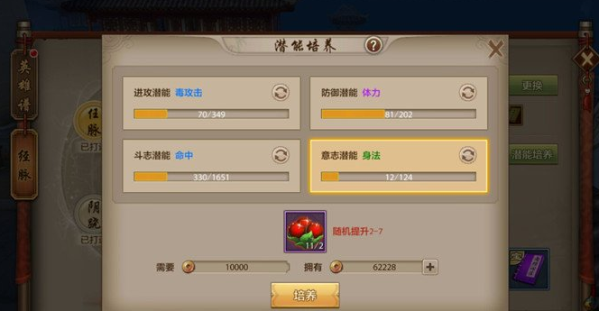 英雄可以激发四个潜能,分别是进攻潜能、防御潜能、斗志潜能和意志潜能。丐帮是《天龙八部手游》中属于毒属性外攻门派,在各种活动中表现突出,有坦克之称。丐帮作为一个可以纠缠对手给队友创造机会的门派,在进攻潜能选择上,要以毒攻击为主。在防御潜能里要选择体力,斗志潜能要选择命中,意志潜能要选择身法,因为身法加闪避、命中和会心。丐帮是近战,这样选择不容易被打倒。潜能的洗练还分为白、绿、蓝、紫、橙五种品质,品质越高,属性值就越大,因此橙色为上选。