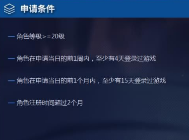 - 角色在申请当日的前1周内,至少有4天登录过游戏。