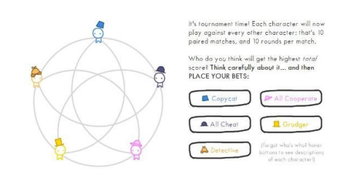 这个升级版的囚徒困境源于一个全世界的重复囚徒困境竞赛(也是这个游戏的来源)。