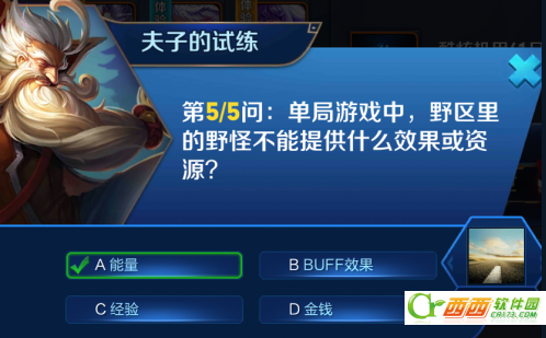 以上就是野区里的野怪不能提供什么效果或资源,王者荣耀夫子的试练答案,请大家继续关注。