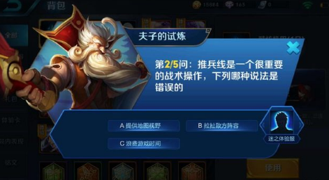 首页 → 安卓游戏资讯 → 安卓游戏攻略 → 推兵线是一个很重要的战术操作下列哪种说法是错误的 王者荣耀夫子的试练答题答案