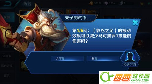 影忍之足可以减少马可波罗1技能伤害吗,是王者荣耀夫子的试炼题目之一,王者荣耀影忍之足被动可以减少受到的普攻伤害,那么影忍之足被动可以减少马可波罗1技能伤害吗,西西带来王者荣耀夫子的试炼答题答案,希望对大家有所帮助。