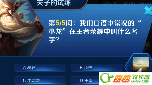 首页 → 安卓游戏资讯 → 安卓游戏攻略 → 口语中常说的小龙在王者荣耀中叫什么名字 夫子的试练答案介绍