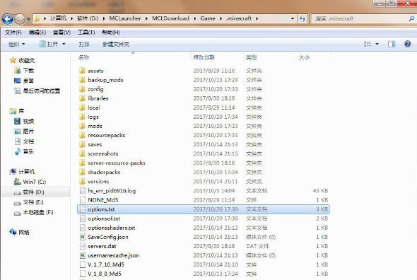 里面会有个“options.txt”的文件(注意,别找成“optionsof.txt”或者“optionsshaders.txt”),打开它