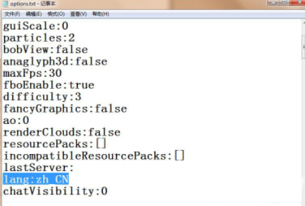 重点来了,打开之后找到一个叫lang的一行,我们把这一行改成lang:zh_CN,出现英文的玩家这个txt里应该会显示“lang:en_US”不过,不管它之前怎么样