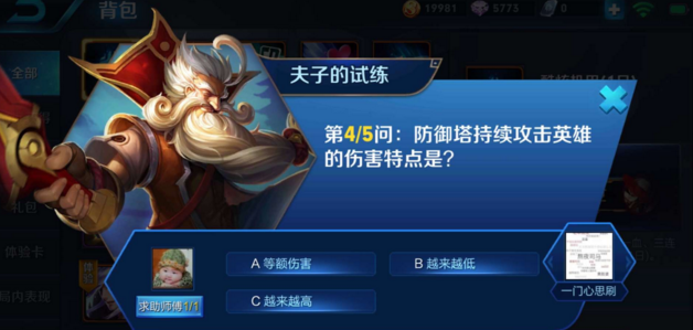首页 → 安卓游戏资讯 → 安卓游戏攻略 → 防御塔持续攻击英雄的伤害特点是 王者荣耀夫子的试练答题答案