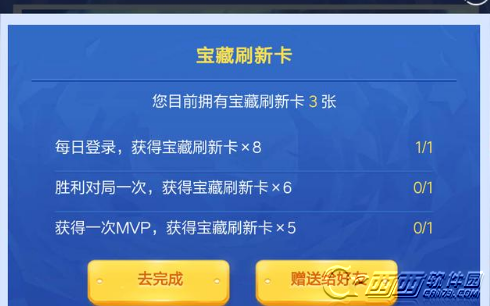 每天做任务一共可以获得19张宝藏刷新卡,而且挖掘宝藏也能获得一定的宝藏刷新卡。