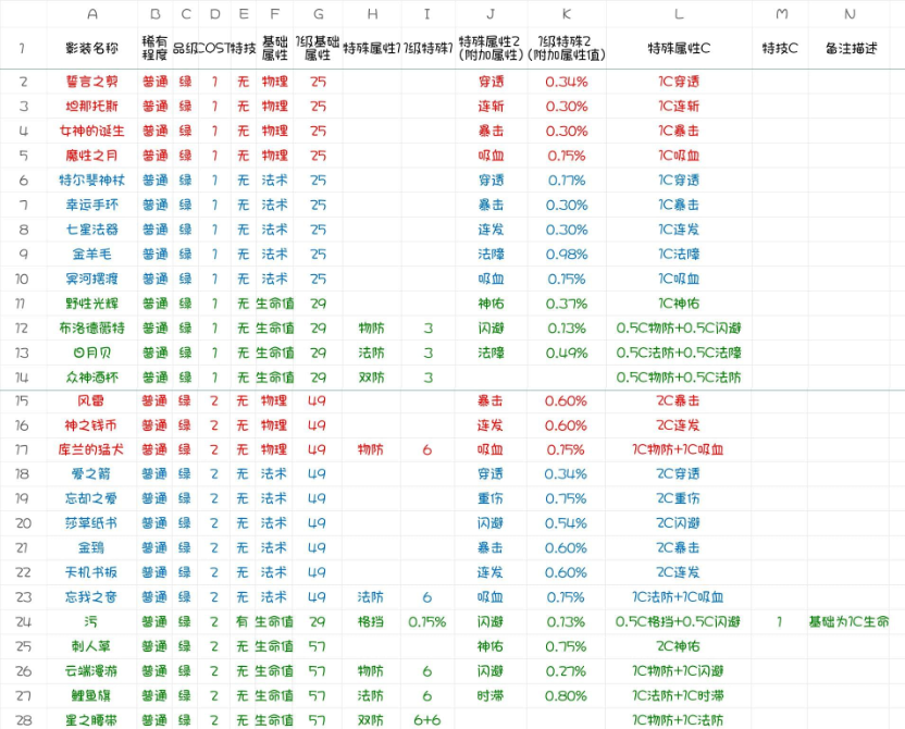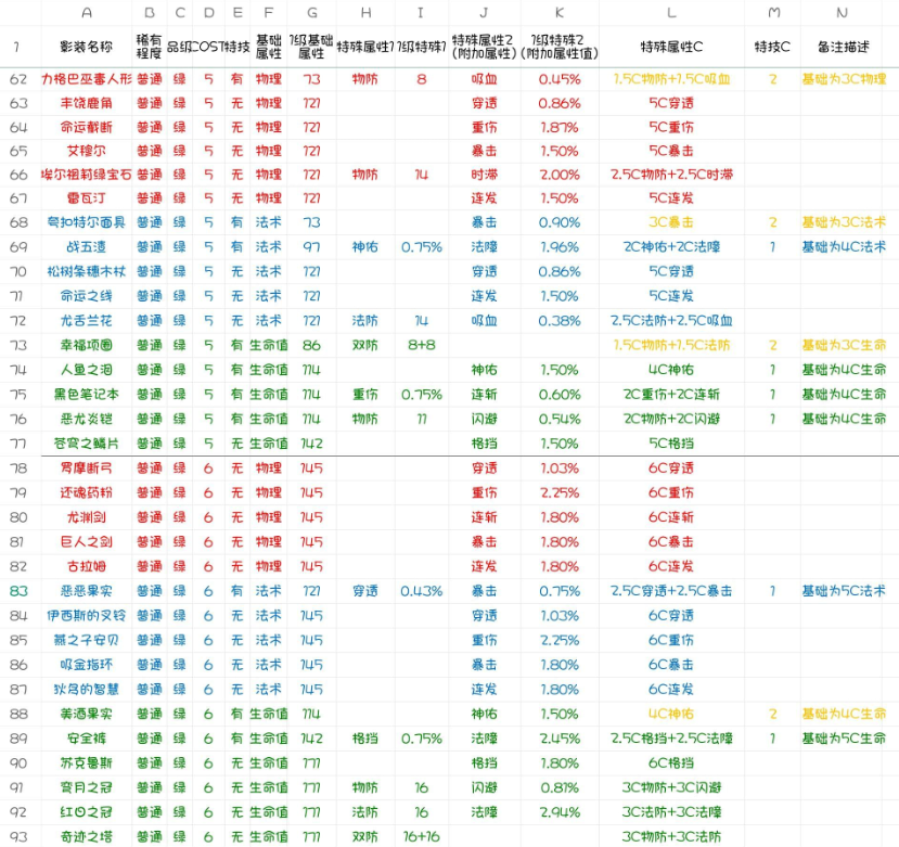 永远的7日之都影装系统详解,游戏三测刚结束不久就有大佬玩家为玩家们整理了普通影装数据大全,接下来西西就给大家带来的是普通影装数据大全!